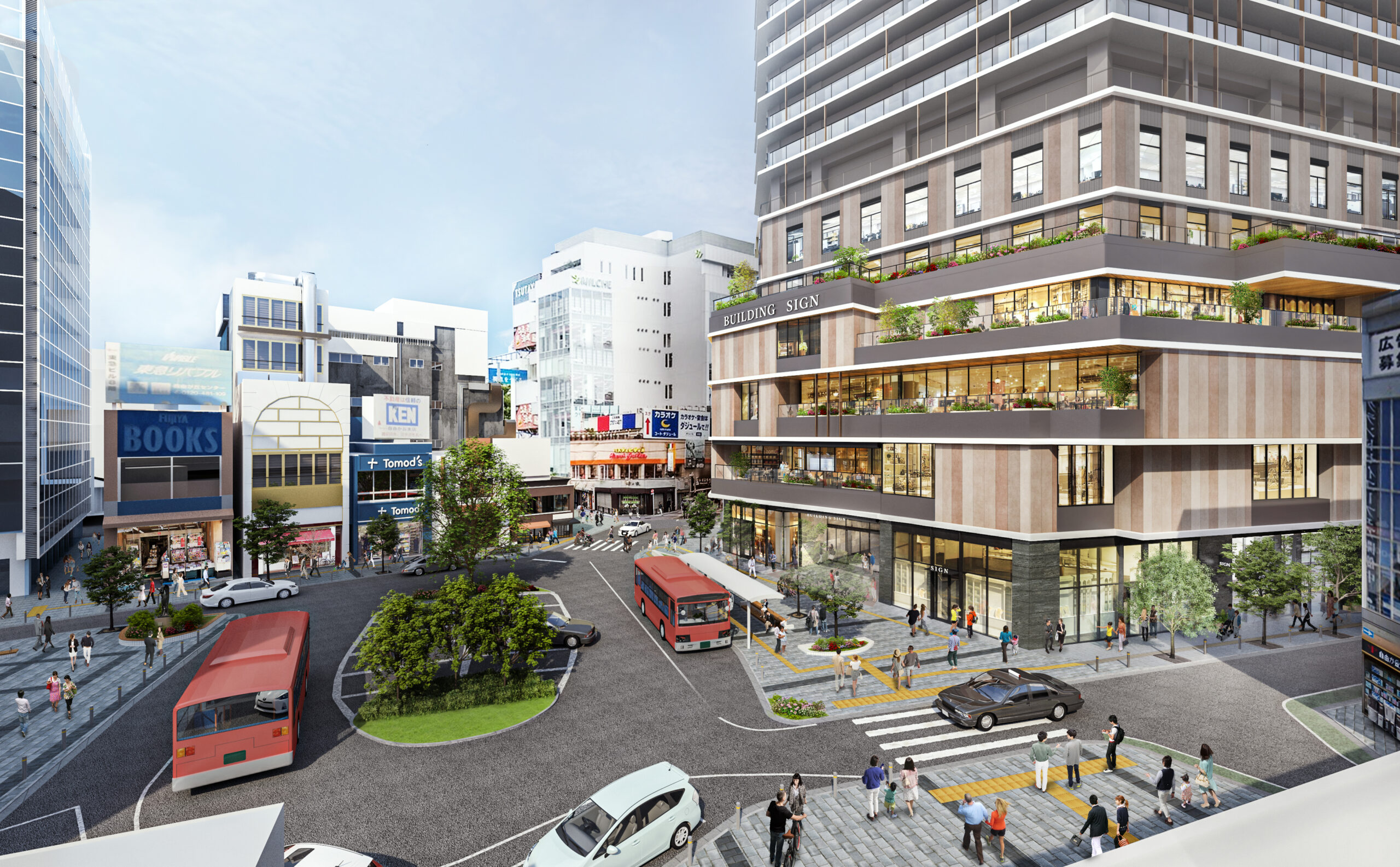 落ち着いた街並みの中に、歴史ある老舗や新しい感覚の個店が調和し、街歩きを楽しめる自由が丘。その自由が丘らしさを継承して、人にやさしい街づくりを目指し、2023 年 10 月より新築工事を進めています。